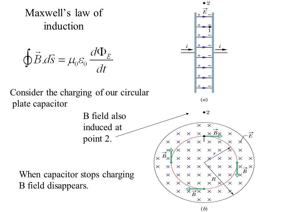 The Maxwell’s law of induction is as follows. Consider the charging of our circular plate capacitor