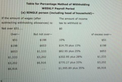 Tam Worldly's weekly gross earnings for the present week were $2,000. Worldly has two exemptions. Using the wage bracket withhol