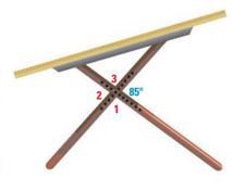The legs of the drafting table form vertical angles. Find the measures of ∠1, ∠2 and ∠3.