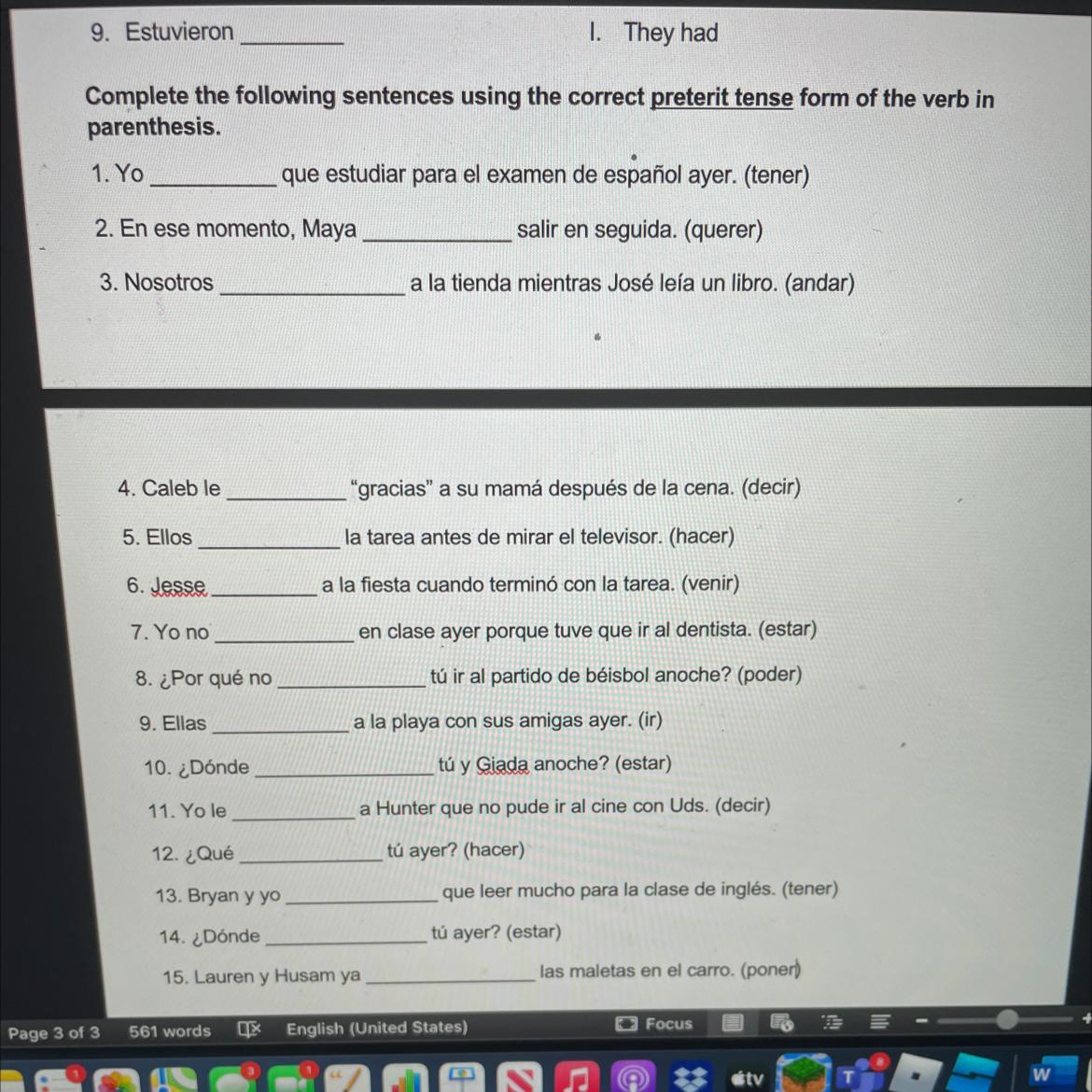 Only choose from these verbs to make your sentences: ayudar, bailar, cantar, comprar, escuchar, estudiar, hablar, nadar, necesit