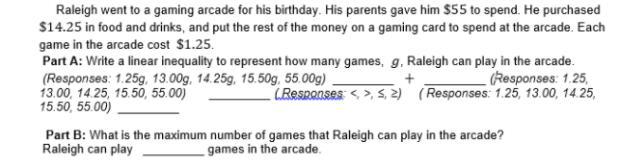 equation: 1.25g + 14.25 <u><</u> 55.00