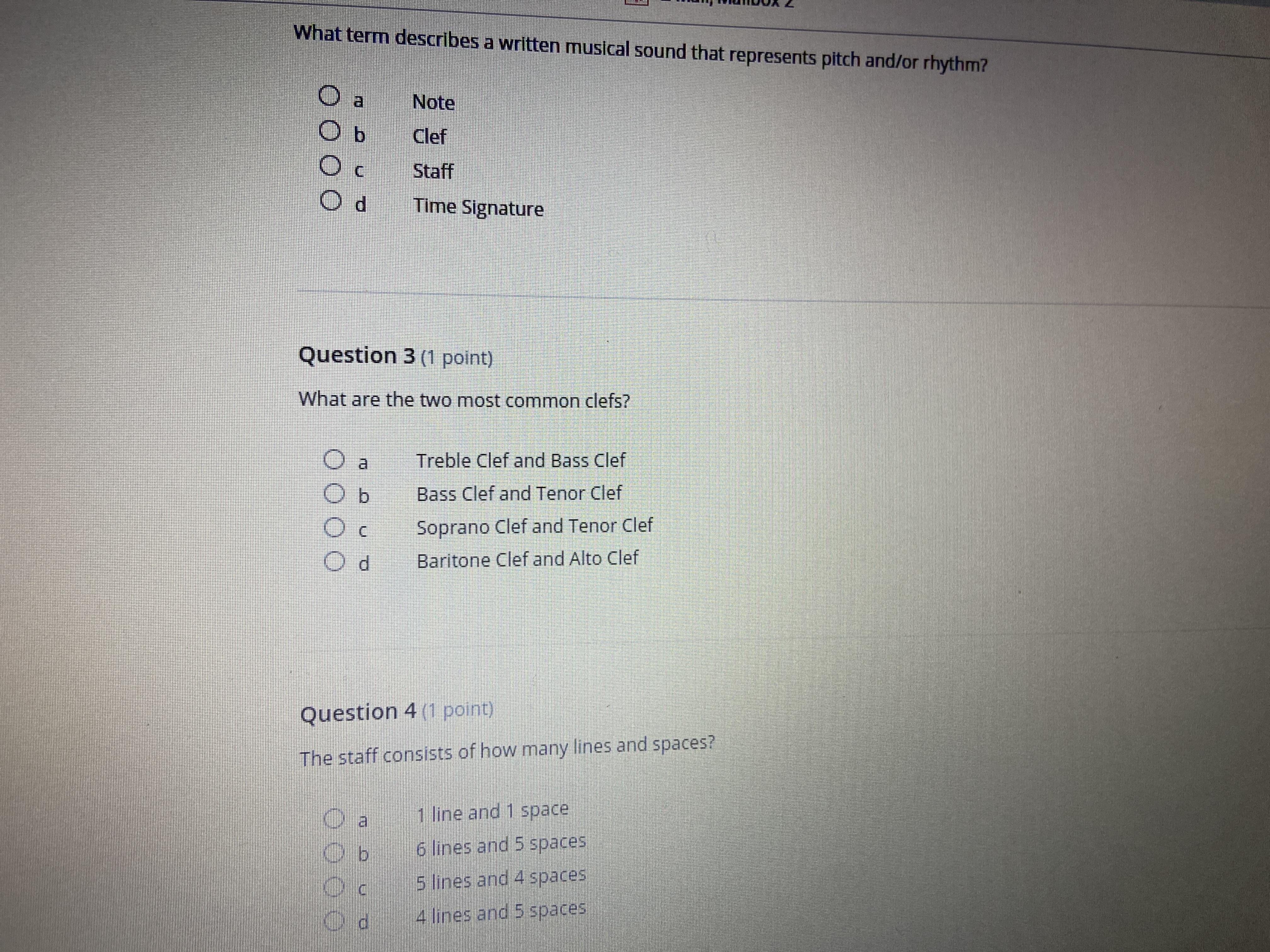 I think the first one is A) note and question 3 is A and question 4 is C