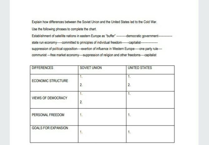 The Cold war was just a disagreement between the Soviet Union and the US. The Soviet Union thought that Communism was better than Capitalism, and the US thought Capitalism was better than Communism.