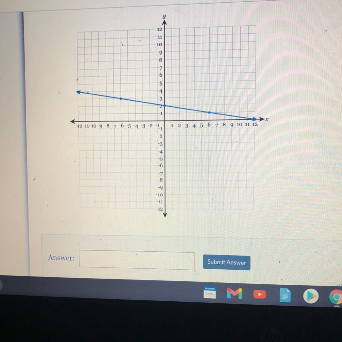 . I chose to work with (0,2) and (6,1). Now, substitute the two points' x and y values into the formula appropriately and solve: