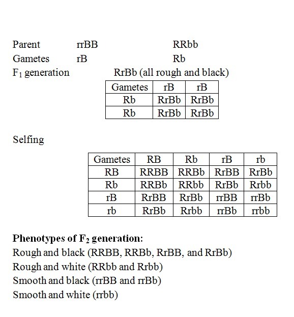 So, the genotype of parents would be rrBB (smooth and black fur) and RRbb(rough and white fur).
