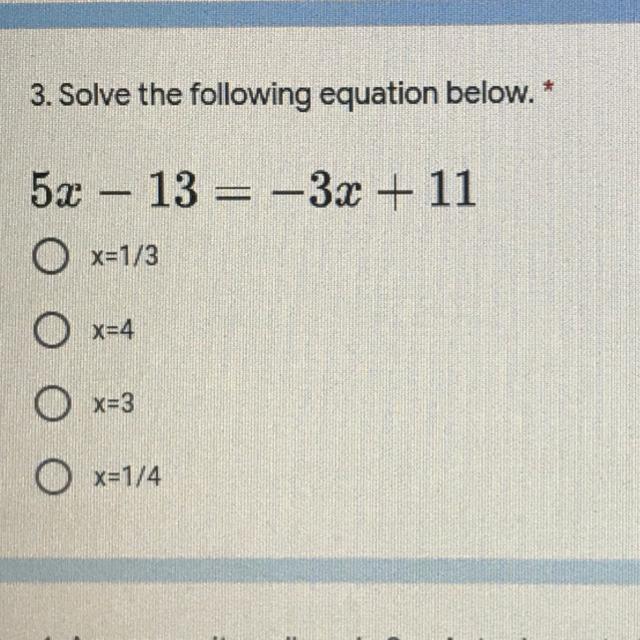 The correct answer is x=11