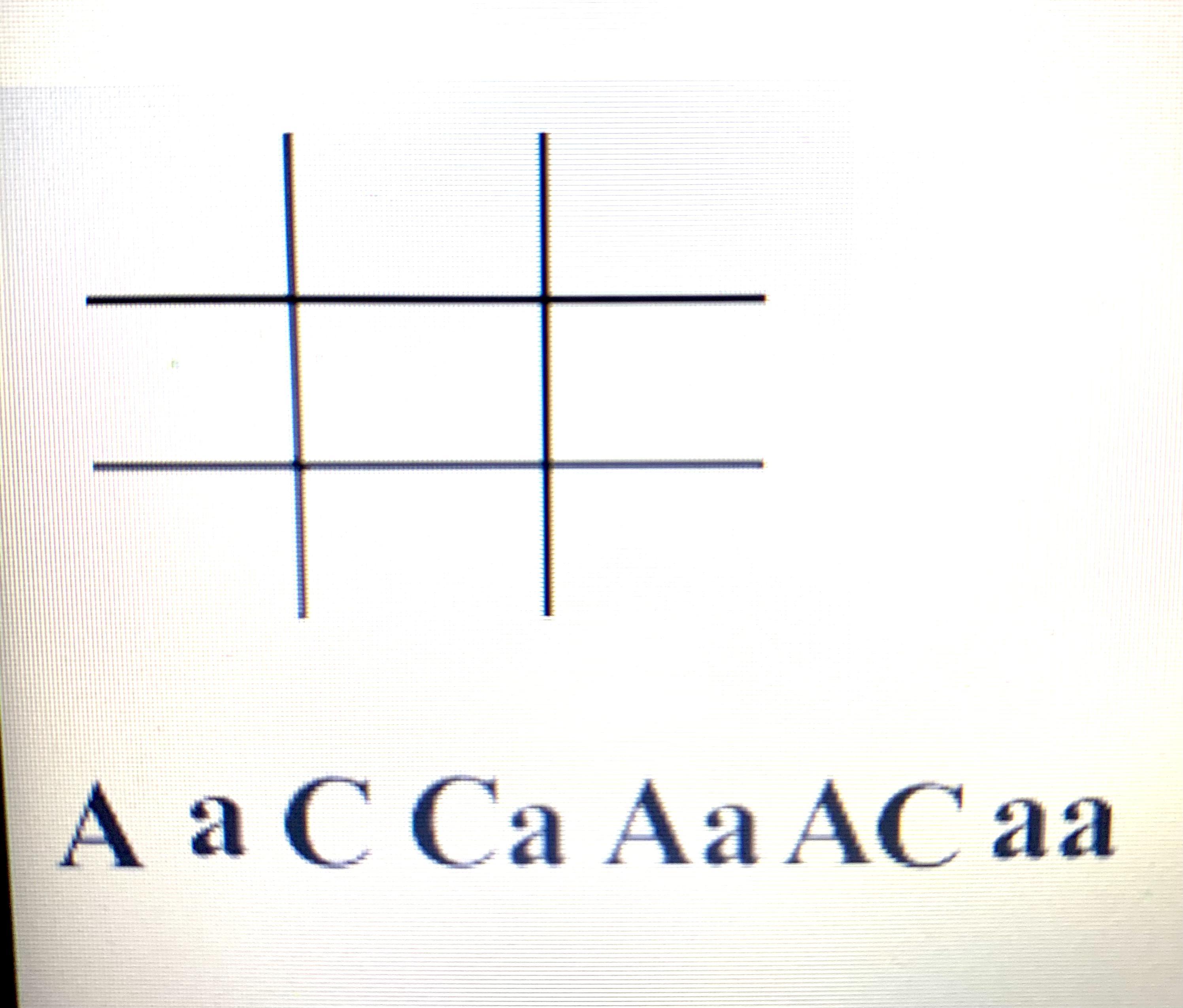 y the previous question. assume the agouti rabbit is female. place your awnsers in their correct spots on the gird. The letters to be placed on the grid are- A a C Ca Aa AC aa. If you can’t see the picture the grid looks like tic-tac-toe.