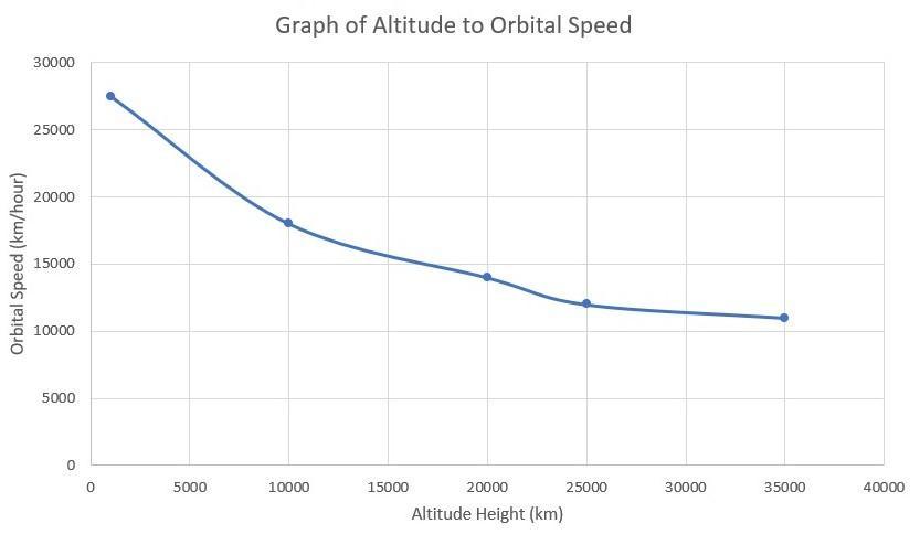 (1) The relationship between the altitude height, 'h', and the orbital speed,