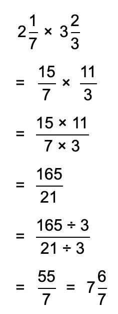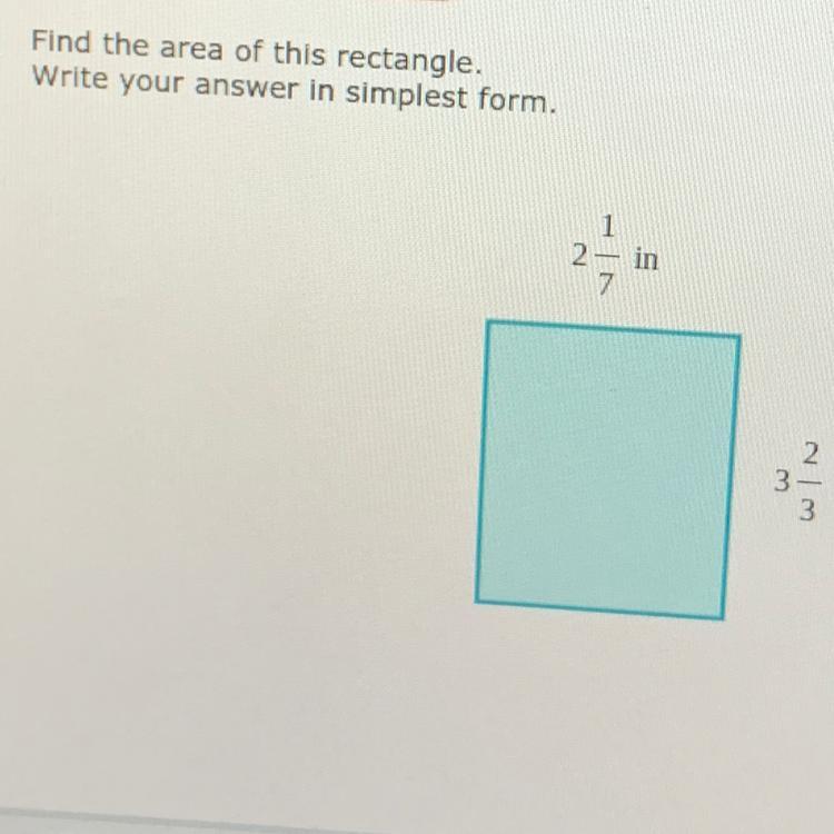 To find the area, multiply 2 1/7 by 3 2/3. Then, simplify to get the answer of     7 6/7.