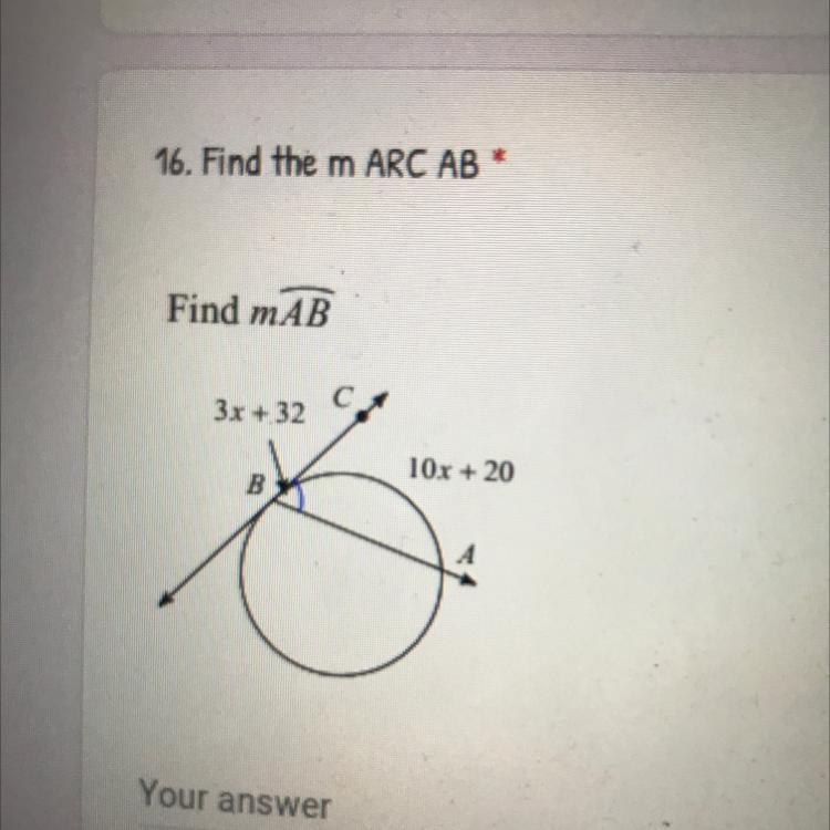 So, according to a certain theorem to do with arcs and their angles, If a tangent and a chord intersect at a point on a circle, then the measure of each angle formed is one half the measure of its intercepted arc.