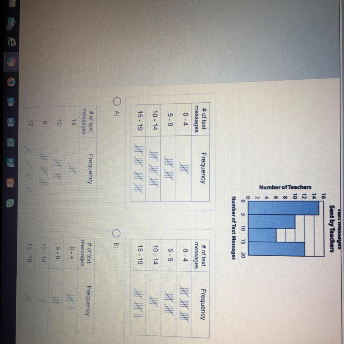 B does. 0-4 if you look at it goes to 15 and if you count the tallies it’s 15. Same goes for 5-9, etc. in B.