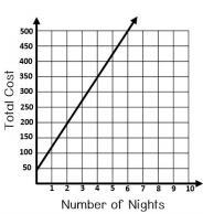 m = slope of the graph, which is the rate per night.