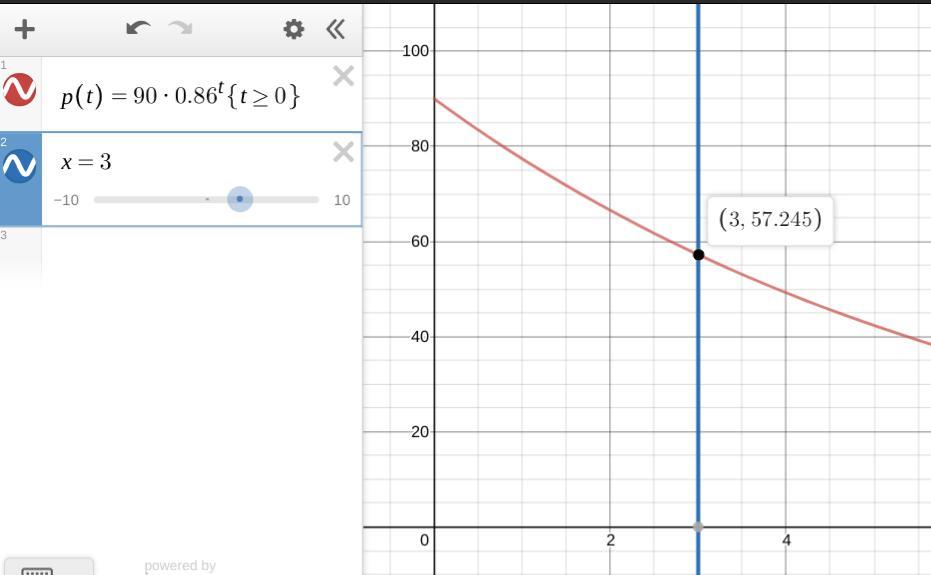 $90×0.86^3 ≈ $57.25