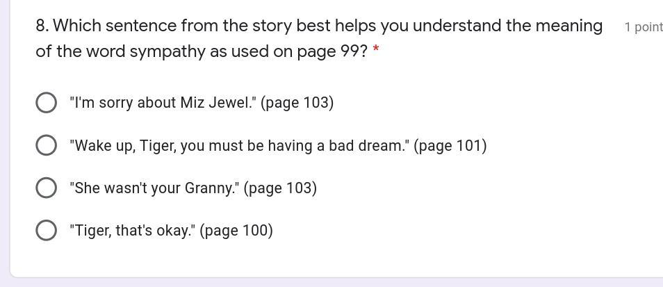 5 D. Tiger did't cry because the difficult situation was that there was a girl for an unknown reason couldn't see her cry.