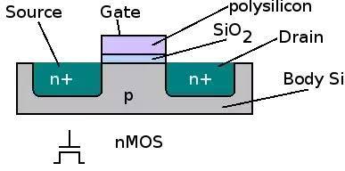 A NMOS is a n-channel MOSFET or Metal Oxide