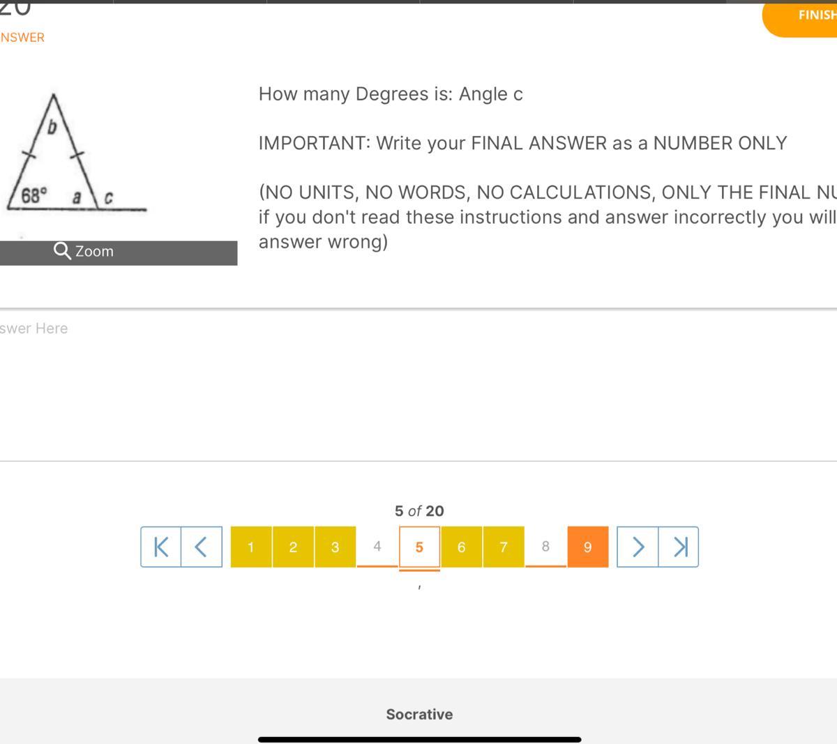 76 degrees. Angle y is supplementary to angle “2x+20”.