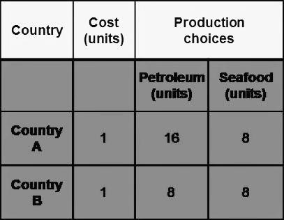 This is because, based on the data in the table, the opportunity cost for Country A to produce 16 units of petroleum is 8 units of seafood.
