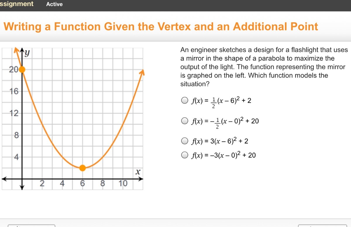 Vertex of the given parabola is (6, 2), Therefore equation will be