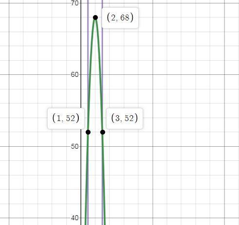 We have to find, If t is in seconds, for which interval of time is the height of the ball greater than or equal to 52 feet?