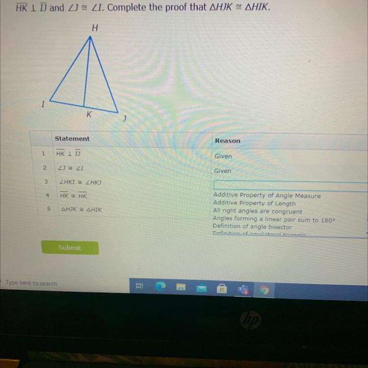 ∠HKI ≅ ∠HKJ (Both of tem are right angles and are equal to 90 degrees)