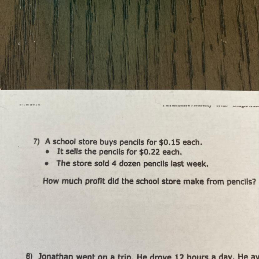 7) A school store buys pencils for $0.15 each.