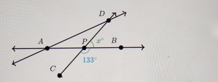 180 degrees - 64 degrees = 116 degrees (angle APD)