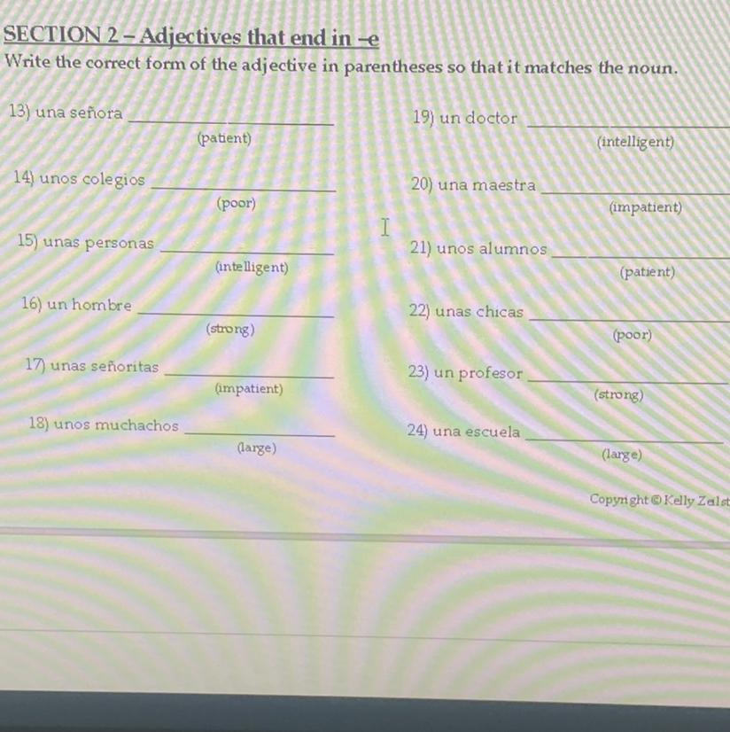 Write in the correct form of the adjective in parentheses so that it matches the noun