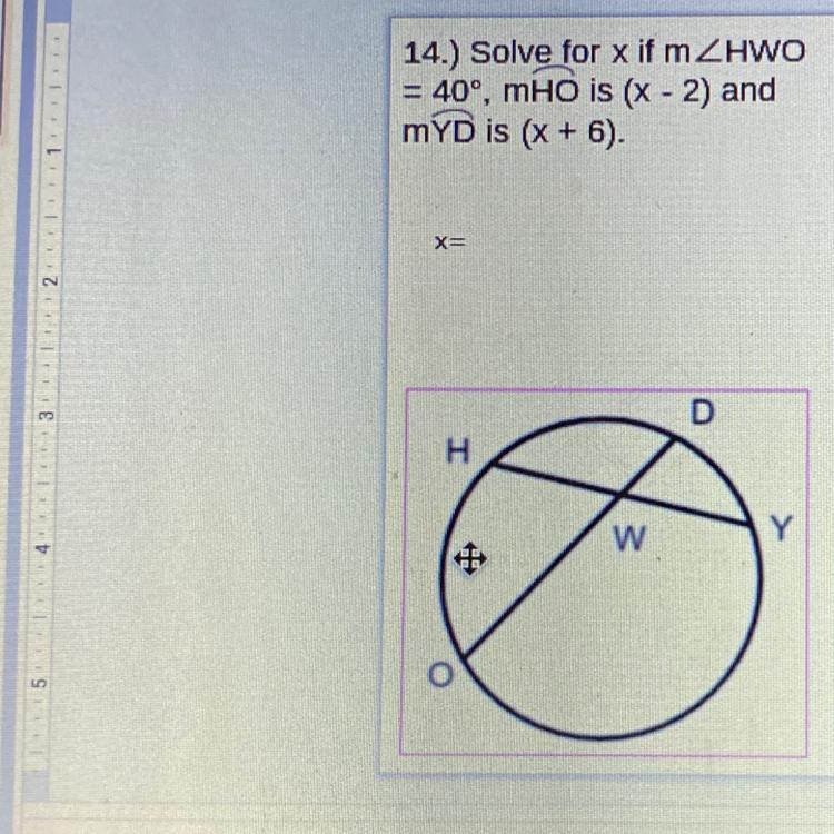 14.) Solve for x if mZHWO