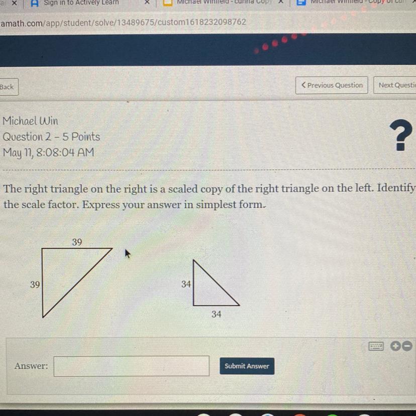 scale factor = \frac{34}{39}