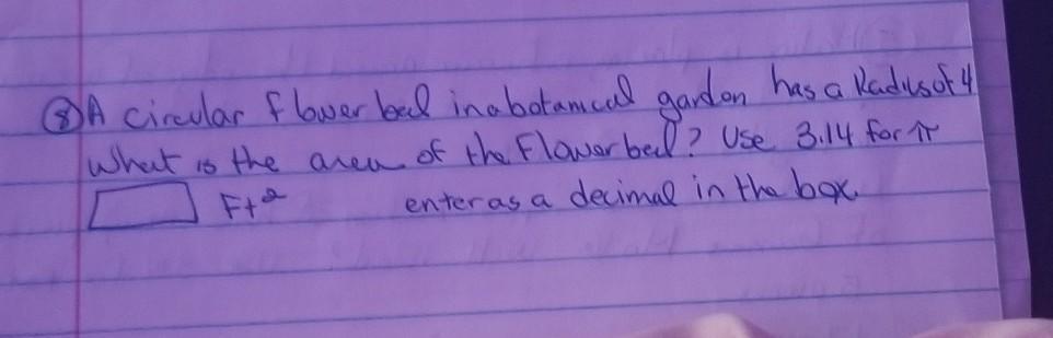 π * r^2 = π * 16 ft^2 = 50.27 ft^2