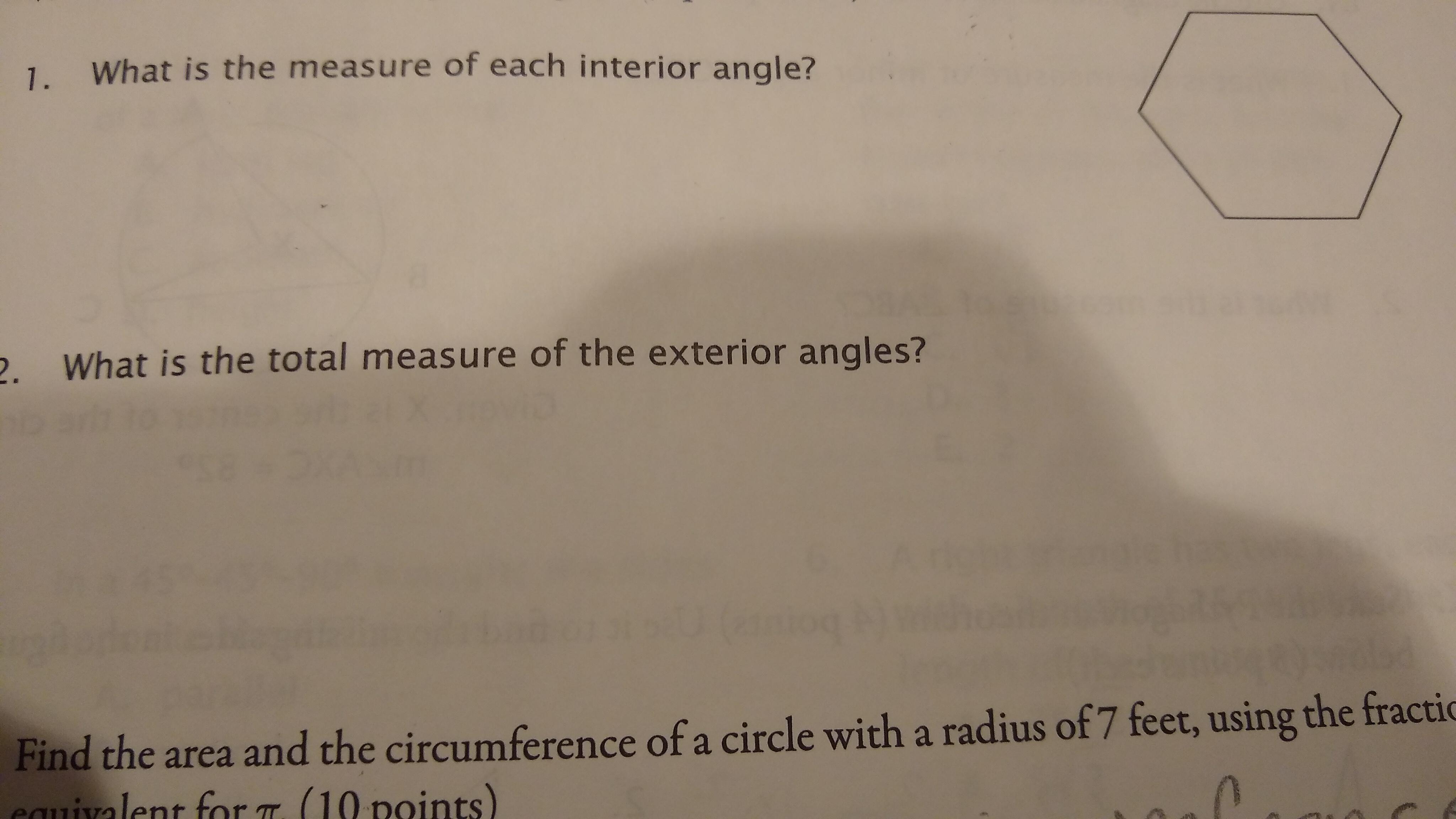 1) if this hexagon is 'regular' (meaning all sides and angles have the same measure) then you can divide the total sum (720°) by 6 to get 120°