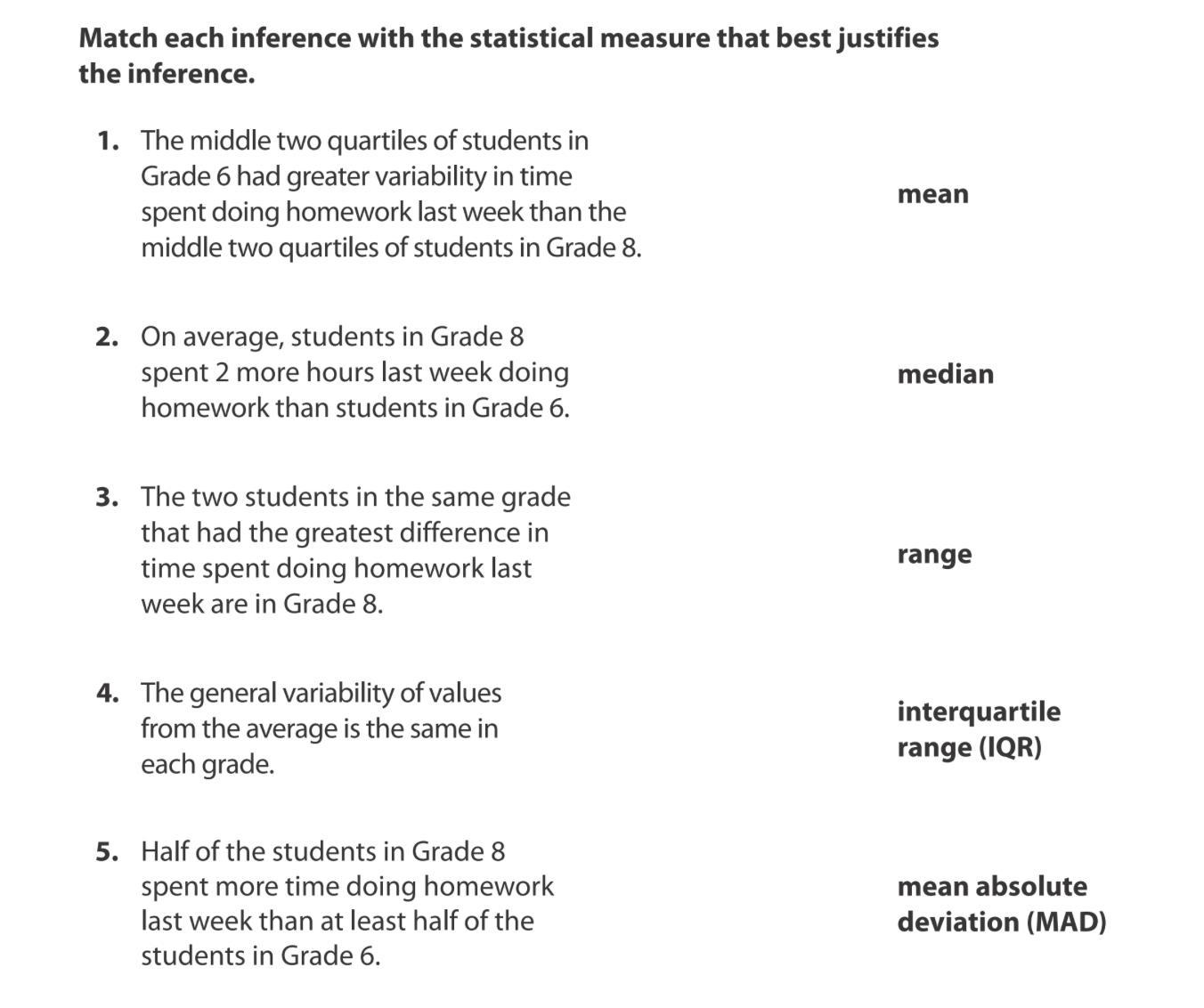 In order to match these up, you first need to understand the basics and the definitions of each term. You also will need to know how to solve for each term. These are the definitions and how to solve for them: