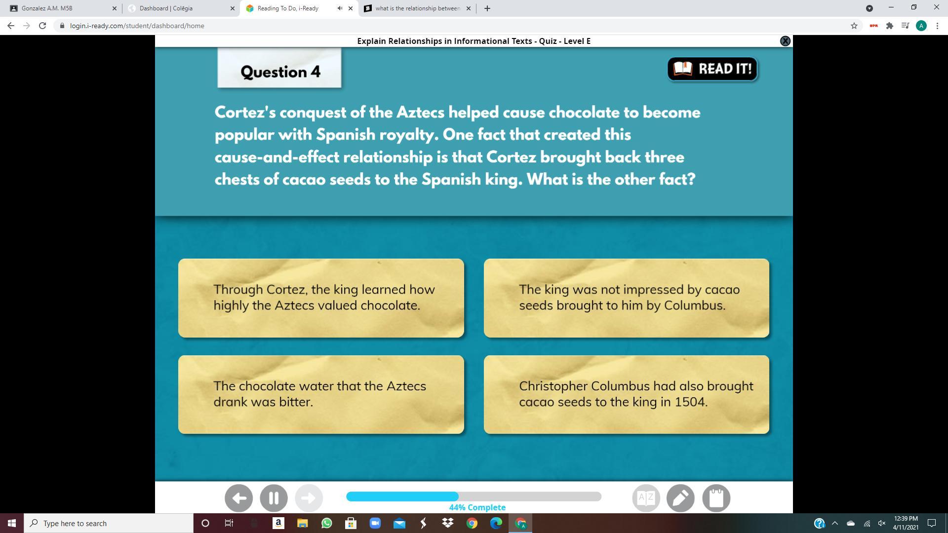 i think it's the king was not impressed by cacao seeds brought to him by Columbus