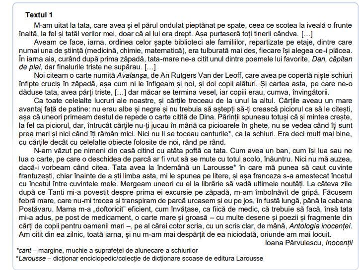 Answer:Tata, personajul din textul „Inocenții”, de Ioana Pârvulescu, este exponentul veritabil al unor vremuri în care părinții erau primele modele ale copiilor în ceea ce privește actul lecturii și stimularea plăcerii de a citi. Din punctul de vedere al influenței sale, tatăl este un personaj actant, deoarece, prin acțiunile lui, influențează, în mod pregnant, destinul personajului-narator.