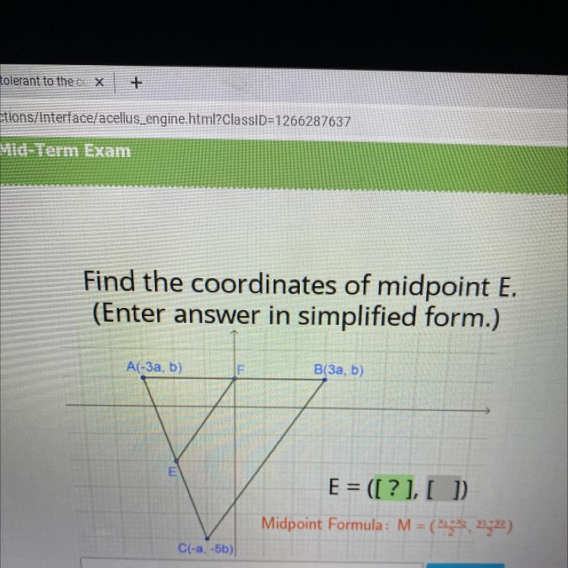 Find the coordinates of midpoint E.