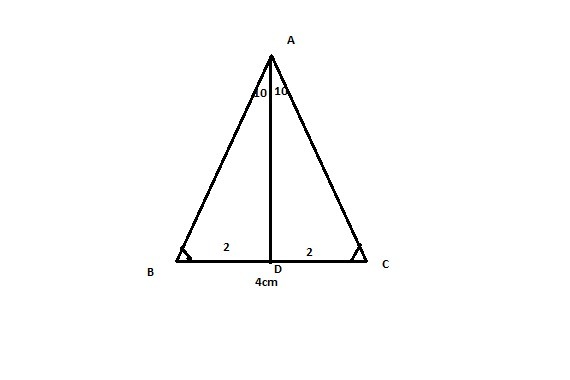 BC=4 centimeters, m angle B=m angle c, and m angle a = 20 degrees