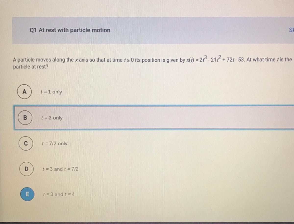 And we want to determine at which time(s) <em>t</em> is the particle at rest.
