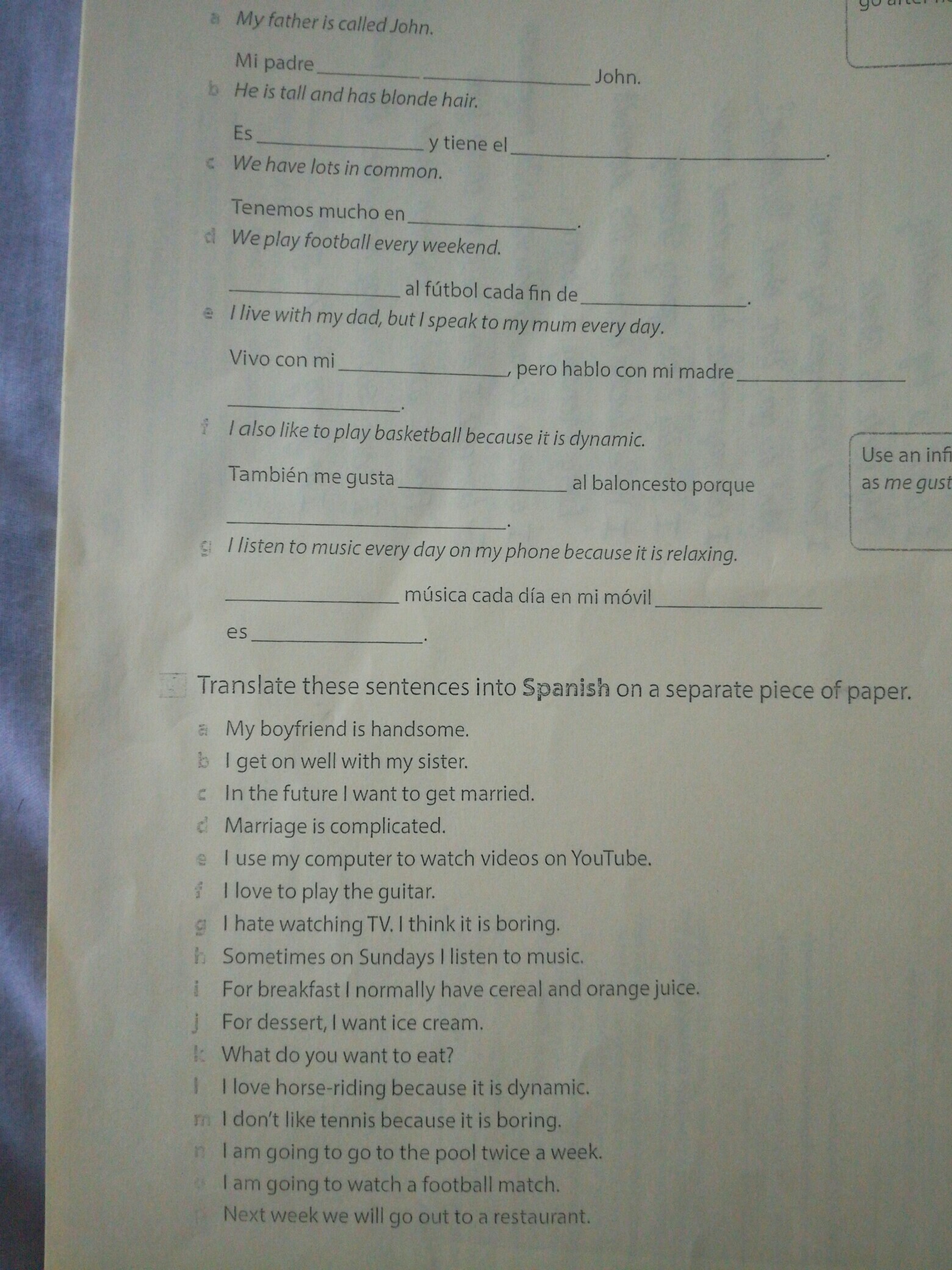 F. También me gusta jugar al baloncesto porque es divertido