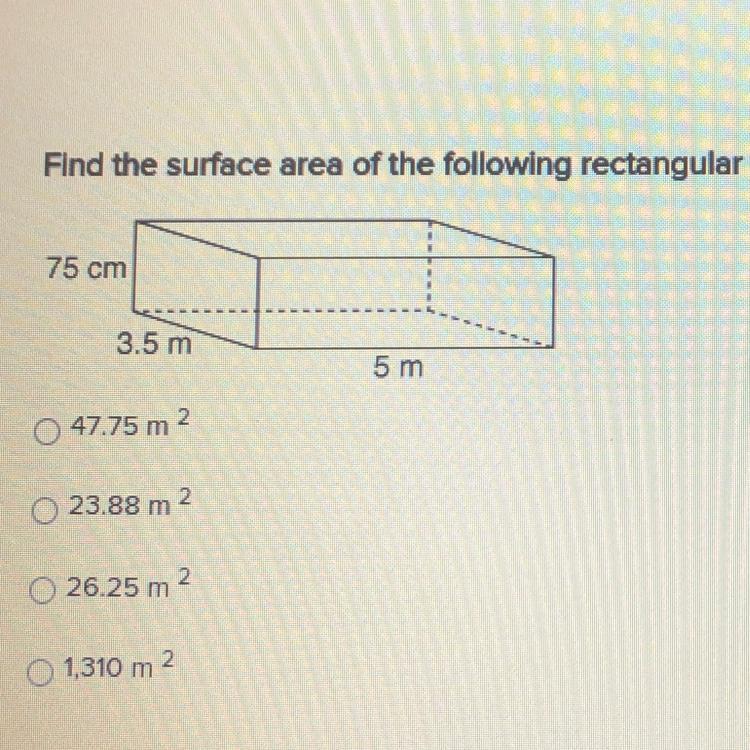 Find the surface area of the following rectangular prism. Express your answer in square meters.