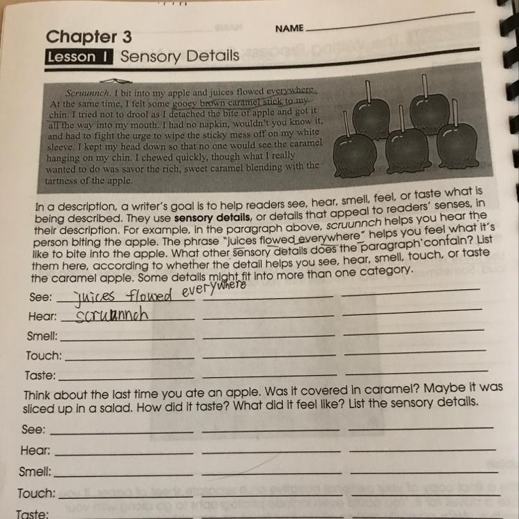 And as for the question at the bottom (it did not go unnoticed!), you should get some practice and try to figure that out yourself! Now that you have an idea of sensory details, you should be doing swell on your own. Have a marvelous day!