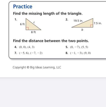 Similarly, in problem 5, you recognize the coordinate differences as 5 and 12, so you know from the (5, 12, 13) Pythagorean triple that the distance will be 13.