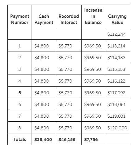 Effective interest = Preceding carrying value x 5%