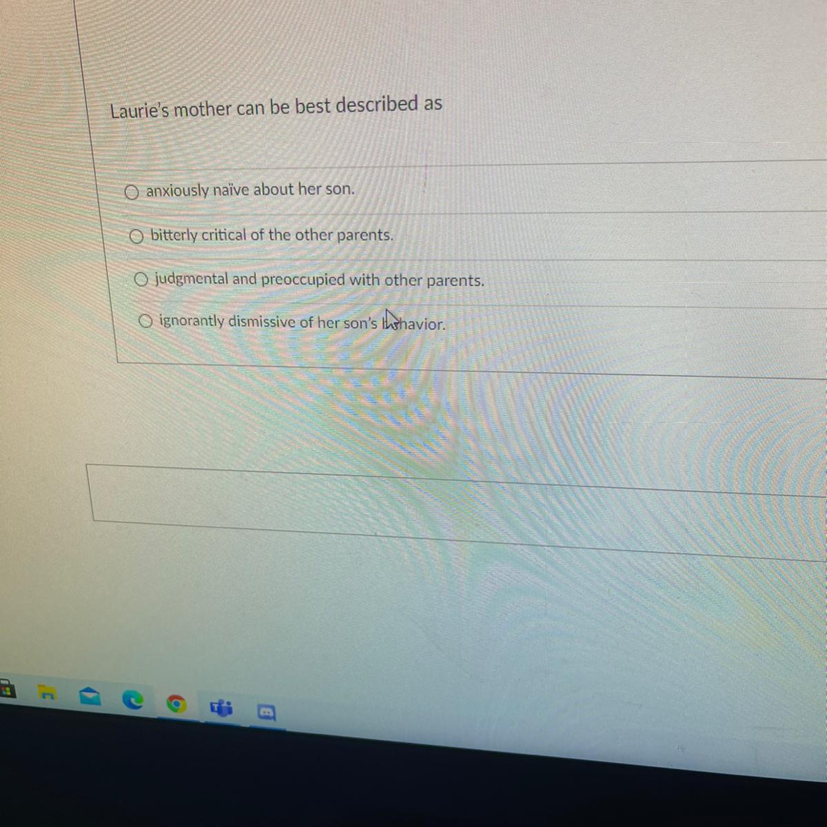 Laurie's mother describes him as "swaggering," for instance, a word which suggests confidence and maturity.