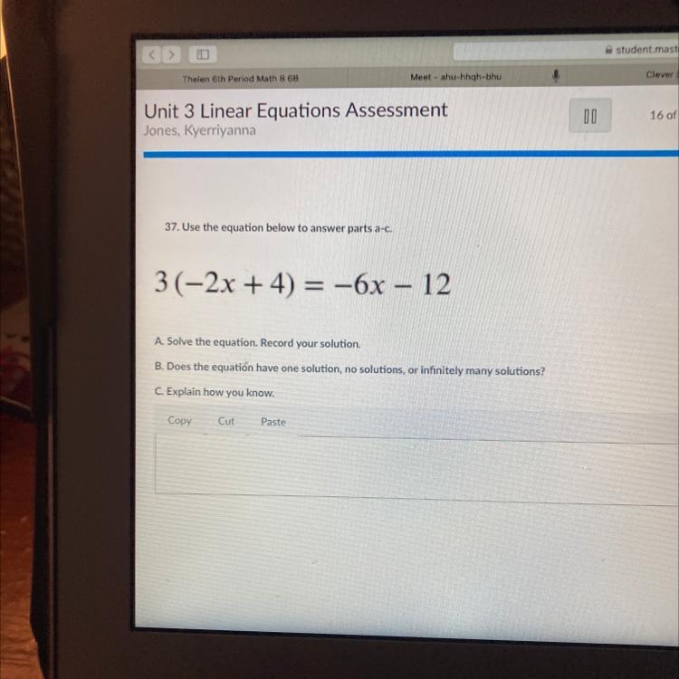 3(-2x + 4) = -6x – 12 subtract 12 from the sides