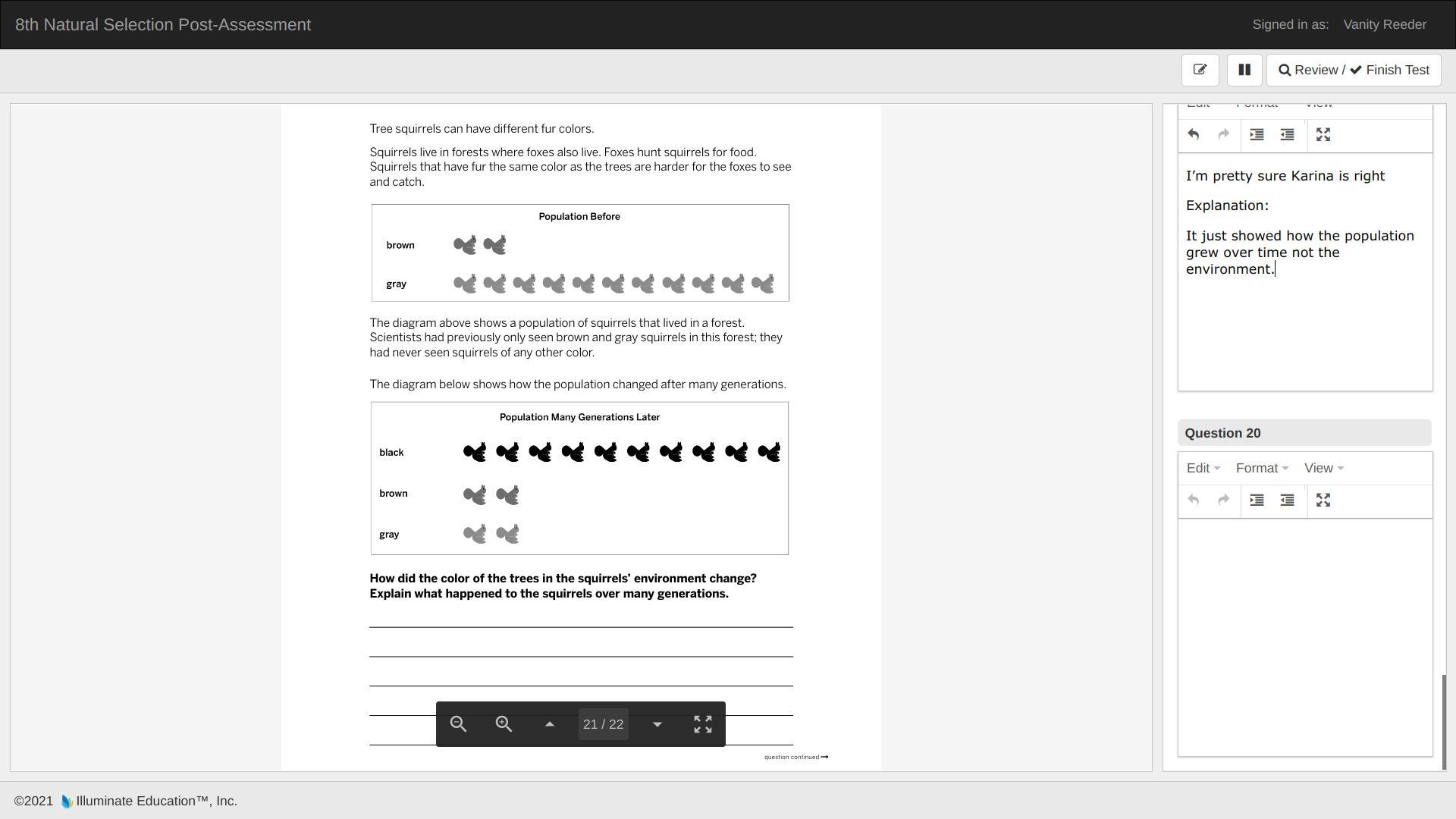 Over time the color of the trees changed to black or a dark color. Because the color of the trees changed the gray and brown squirrels were more noticeable to the foxes causing them to be killed off. This meant over time the squirrells with black fur survived and bred eventually populating the area with black squirrells.
