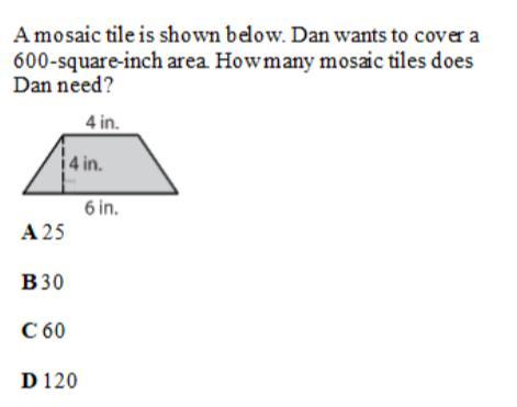 The mosaic tile has a trapezoidal shape, so that its area can be determined as follows;