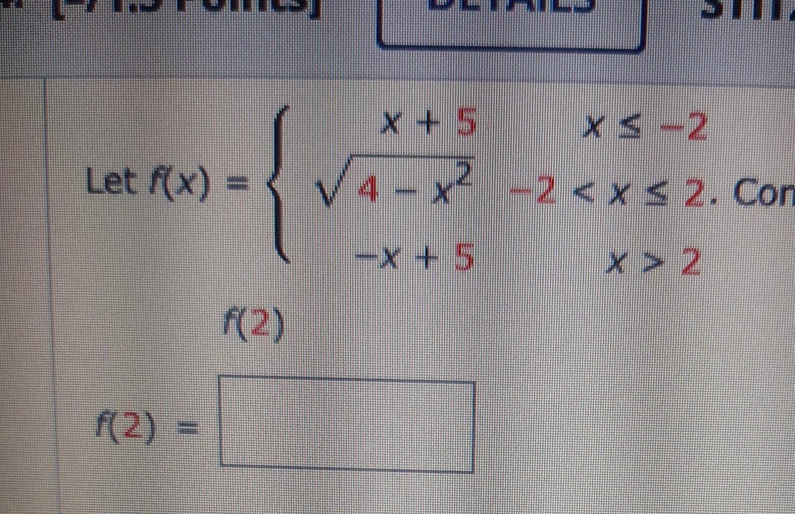 X + 5 x < -2 4 – x2 -2 ​