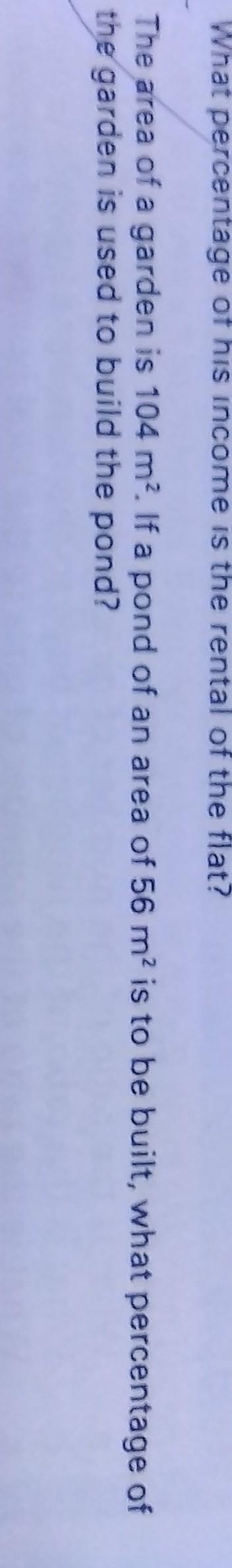 Area of a garden = 104 m^2Area of a pond = 56 m^2