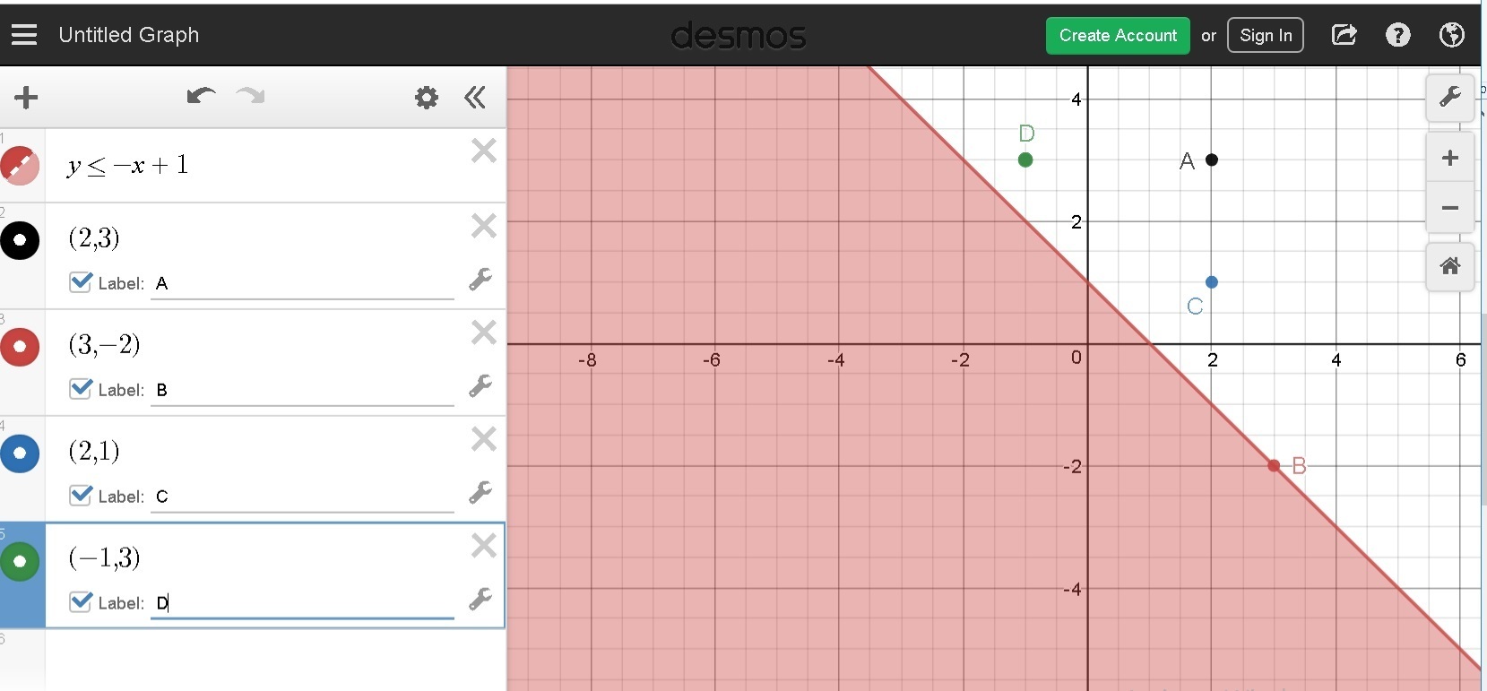 Point D(-1,3)