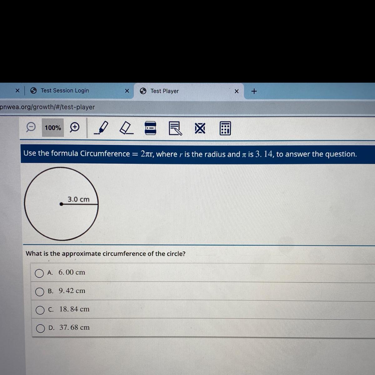 50 POINTS PLEASE HELP!!! Use the formula Circumference = 2nr, where r is the radius and a is 3. 14, to answer the question.